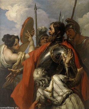 ….. 34 И пришел Иеффай в Массифу в дом свой, и вот, дочь его выходит навстречу ему с тимпанами и ликами: она была у него только одна, и не было у него еще ни сына, ни дочери.